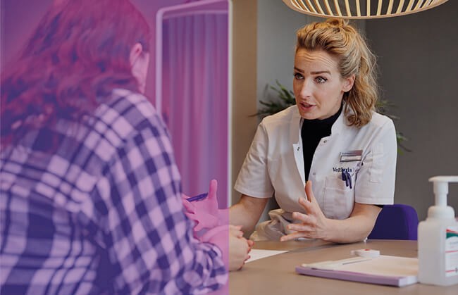 Plastisch chirurg Marijke van den Elzen legde Ella uit dat ze de positie van Ella’s tepels wat omhoog kon plaatsen en de ‘huidenvelop’ daaronder wat smaller kon maken,