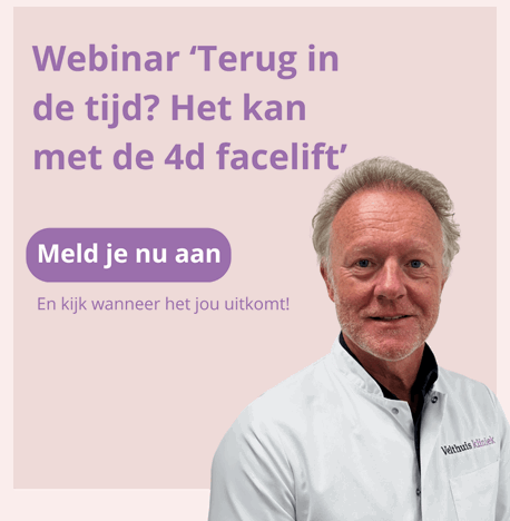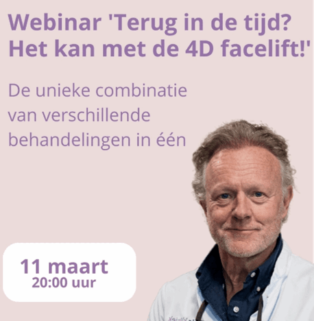 Onze plastisch chirurg Jeroen Stevens gaat je tijdens het webinar alles vertellen over de voordelen van een 4D facelift en over de unieke combinatie van verschillende, elkaar versterkende, behandelingen in één.