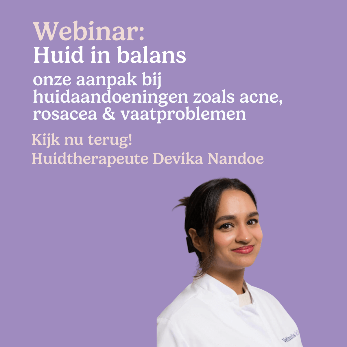 Webinar 'Huid in balans: onze aanpak bij huidaandoeningen zoals acne, rosacea & vaatproblemen.'