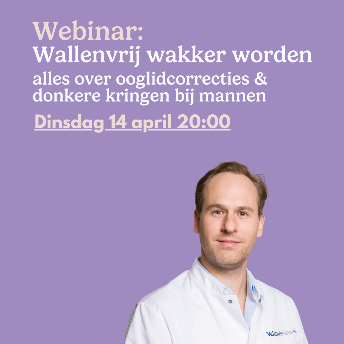 Webinar 'Wallenvrij wakker worden: alles over ooglidcorrecties & donkere kringen bij mannen'.