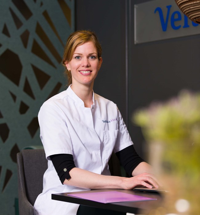 "Het leveren van zorg op maat is een belangrijke drijfveer voor mij persoonlijk. Werken bij Velthuis kliniek biedt mij de mogelijkheid om invulling te geven aan deze persoonlijke ambitie. Daarnaast is de sfeer bij Velthuis kliniek heel goed en is er een sterk teamgevoel, wat het werken ook heel prettig maakt.